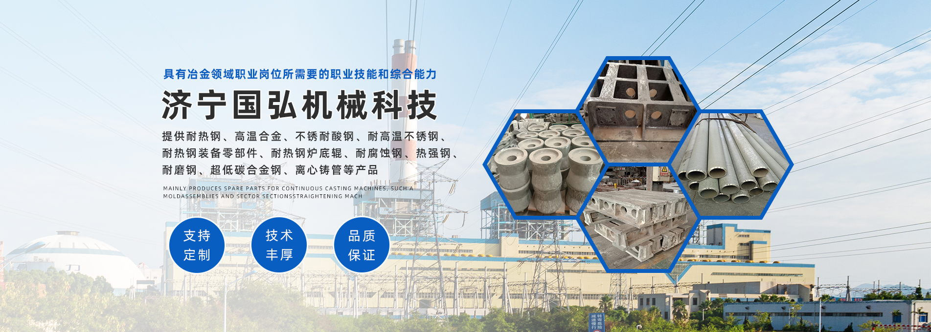 ABOUT US濟寧國弘機械科技有限公司是生產耐熱、耐磨、耐腐蝕合金鋼、耐熱鋼鑄件、不銹鋼鑄件的專業生產廠家,公司位于齊魯大地,孔孟之鄉、中國大蒜之鄉、合金鑄造之鄉的山東省濟寧市金鄉縣羊山鎮開發區。公司具有離心鑄造、失蠟精密鑄造、負壓實型鑄造、機械加工、設備工藝先進、技術實力雄厚,集生產、科研與貿易于一體,生產、檢測和監控手段齊全的特種鋼生產科技企業。